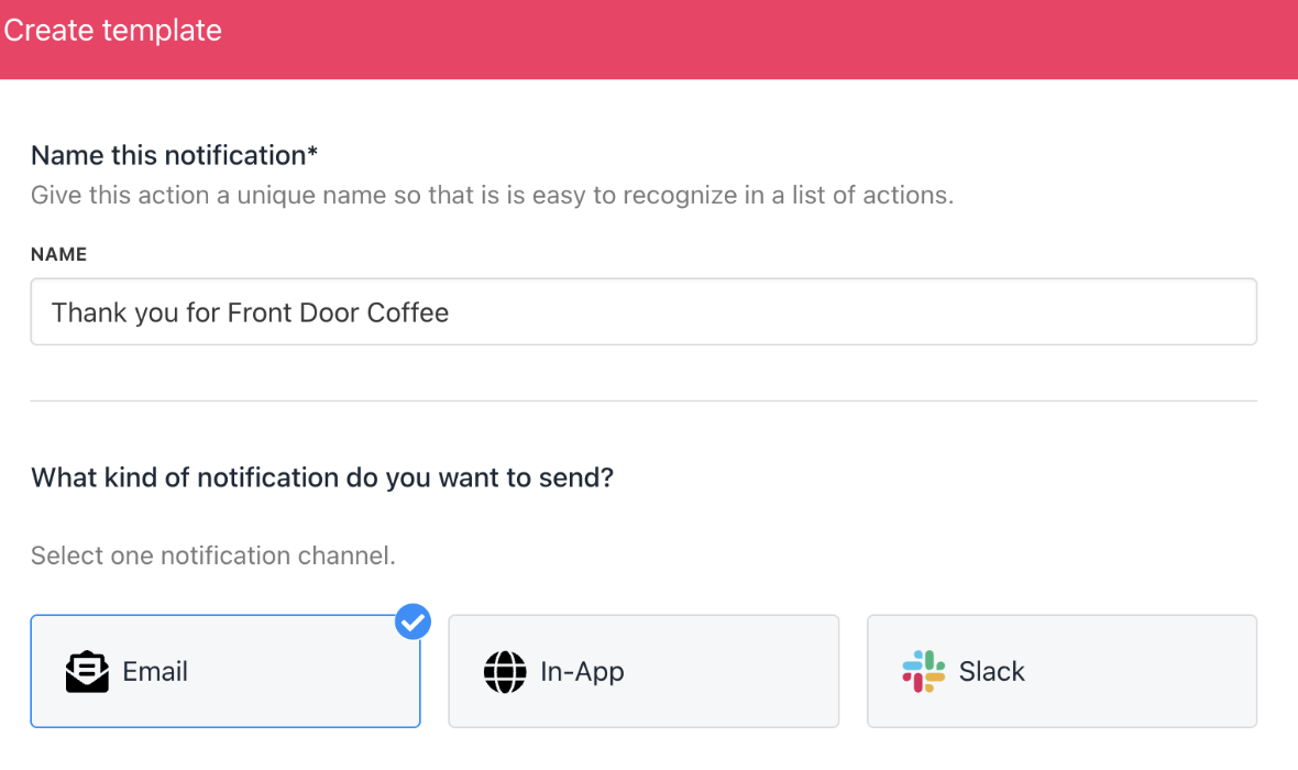 - Choose the Message Type: email, in-app, or Slack (depending on enabled notification channels).