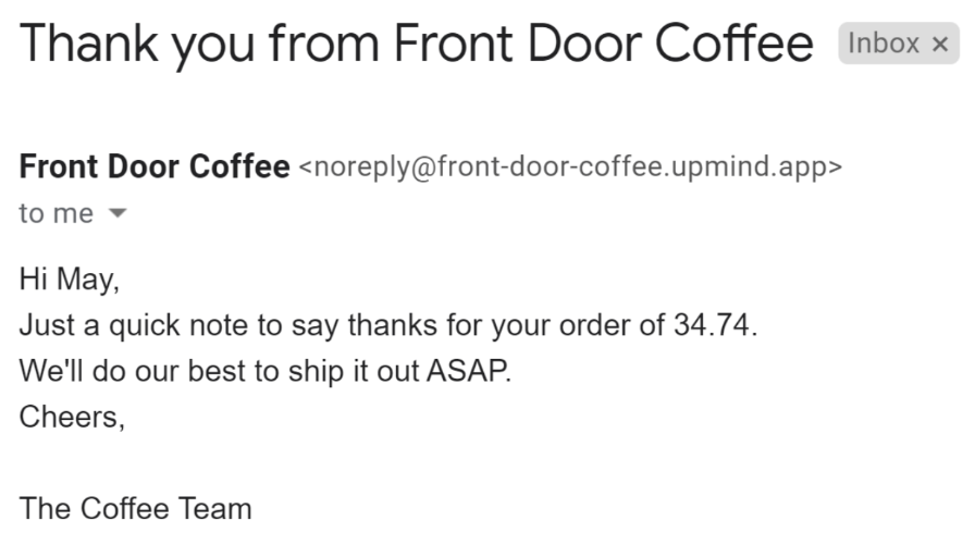 Once configured, Upmind automatically sends the notification whenever the trigger happens.