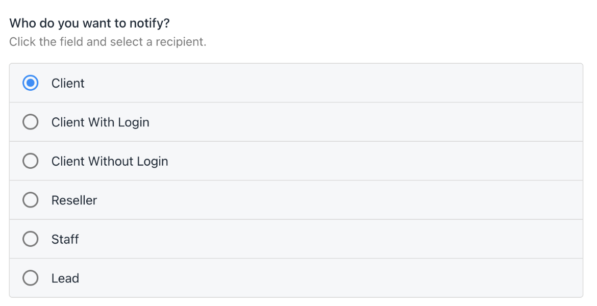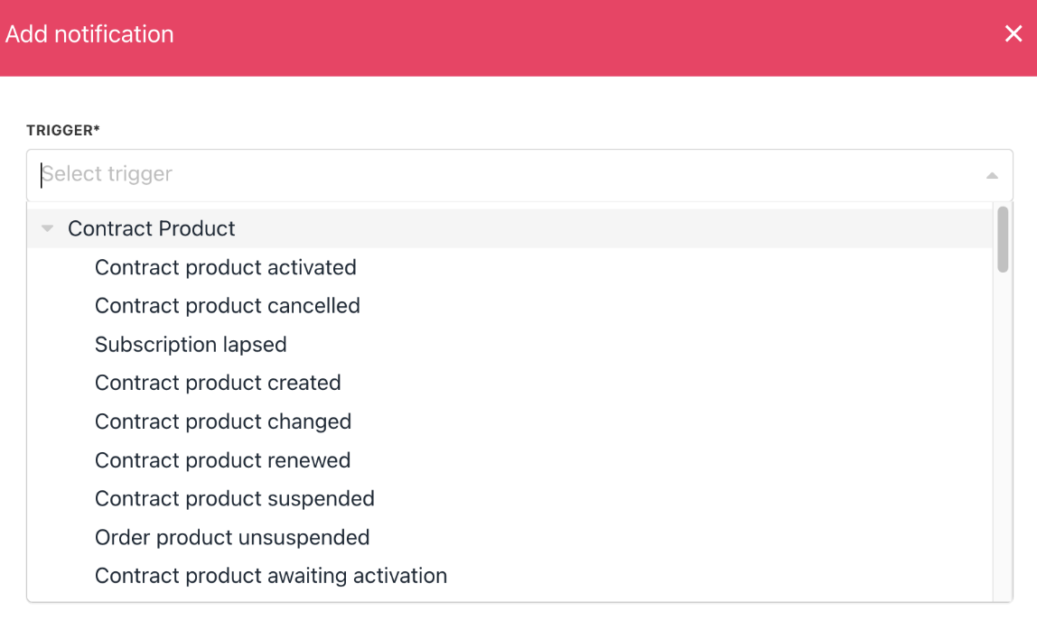 - Click the Trigger field and select the event that will activate this notification (e.g. product purchased, subscription renewed).