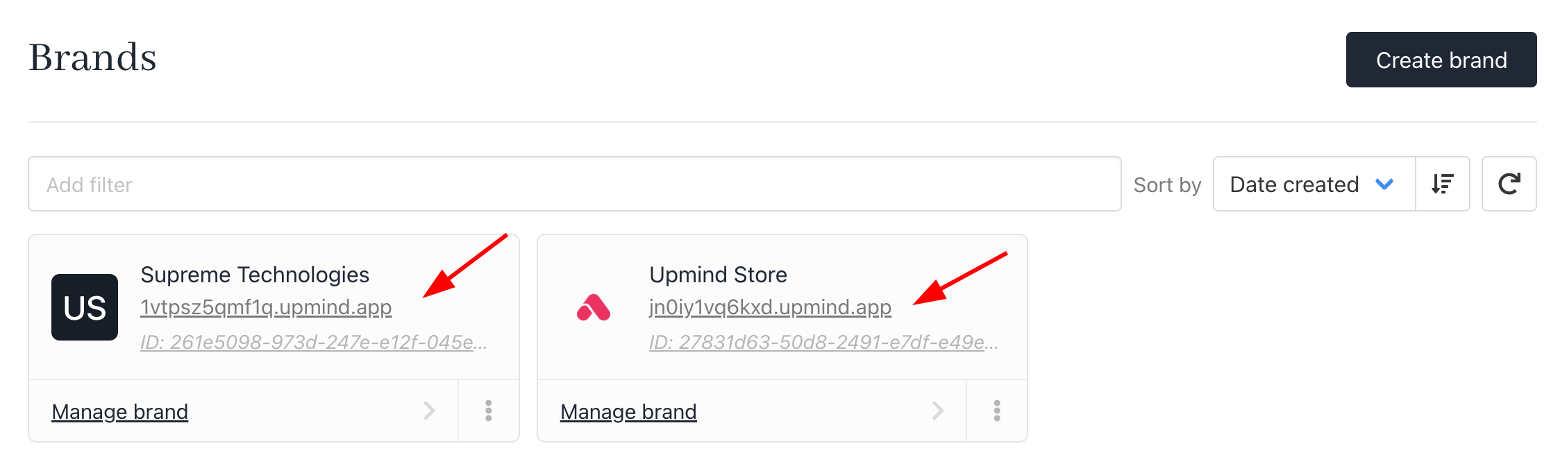 You can also copy your brand's UUID (Universally Unique Identifier) from the admin brand's list view.