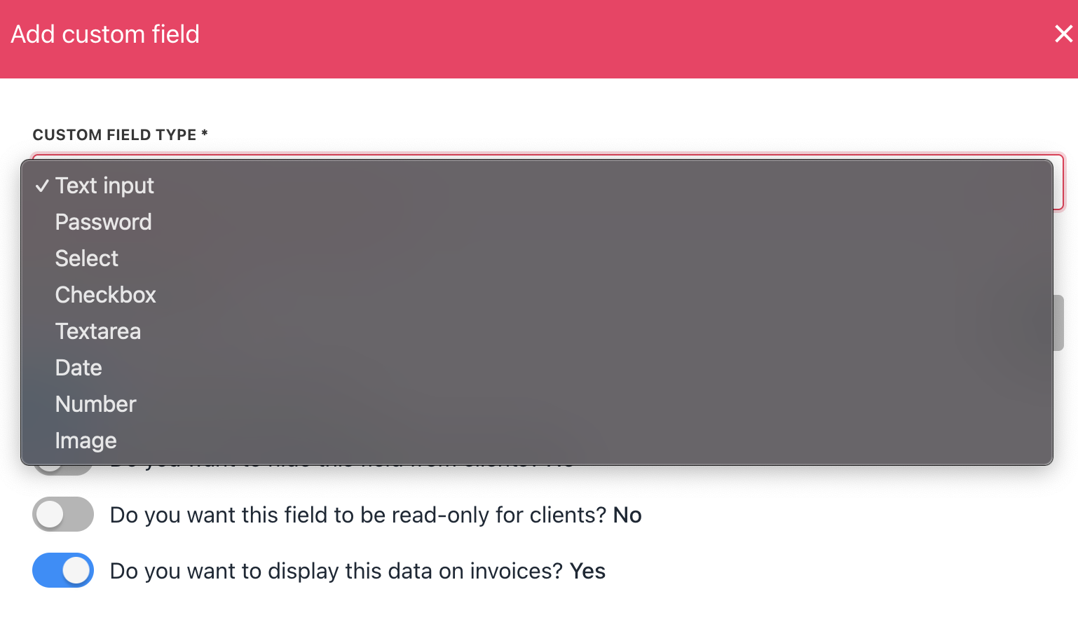 Custom fields are especially powerful because you can use them to search and categorise clients. Clients can optionally view and edit their custom field information through their self-service client area. You can also choose to display custom field information on the invoices that you send clients.