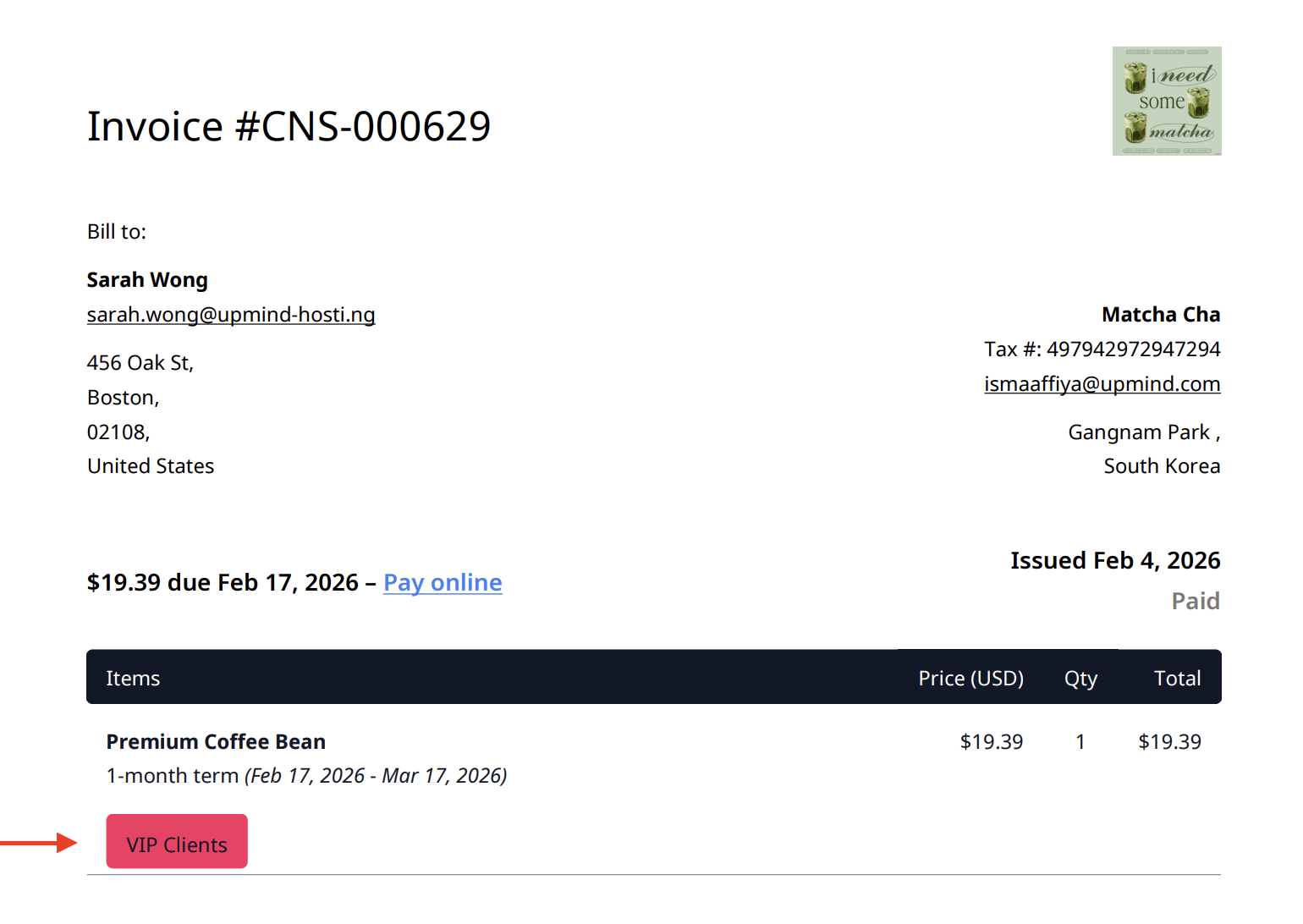 When you create a product tag, you can customise its colour and choose whether to show it to customers and on invoices. If you enable this option, the product tag will appear on the invoice PDF.