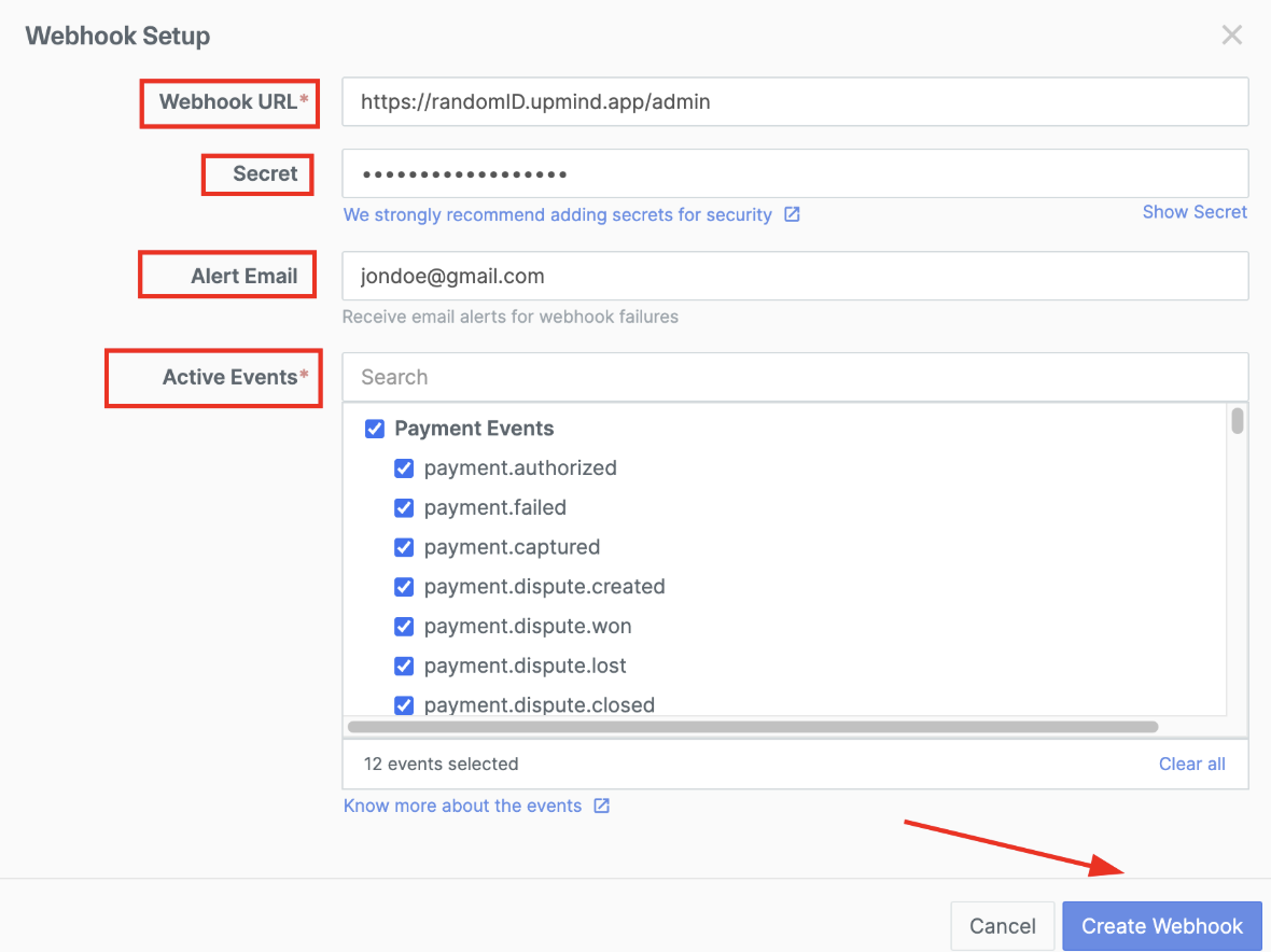 Configure RazorPay webhook