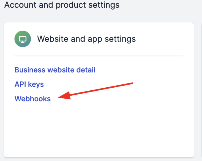 - Click Webhooks under Website and app settings.