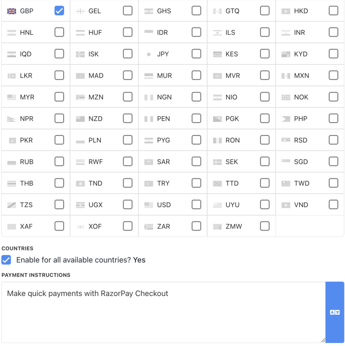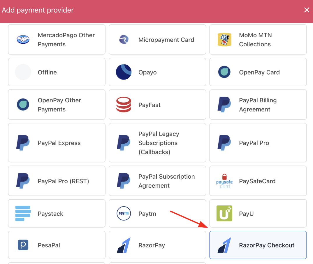 Customers need to check with Razorpay support that the recurring payments feature is enabled for their account, and that it is available in their country (India, Malaysia, Singapore). This should be requested first if it is not active. For more information, follow this guide.