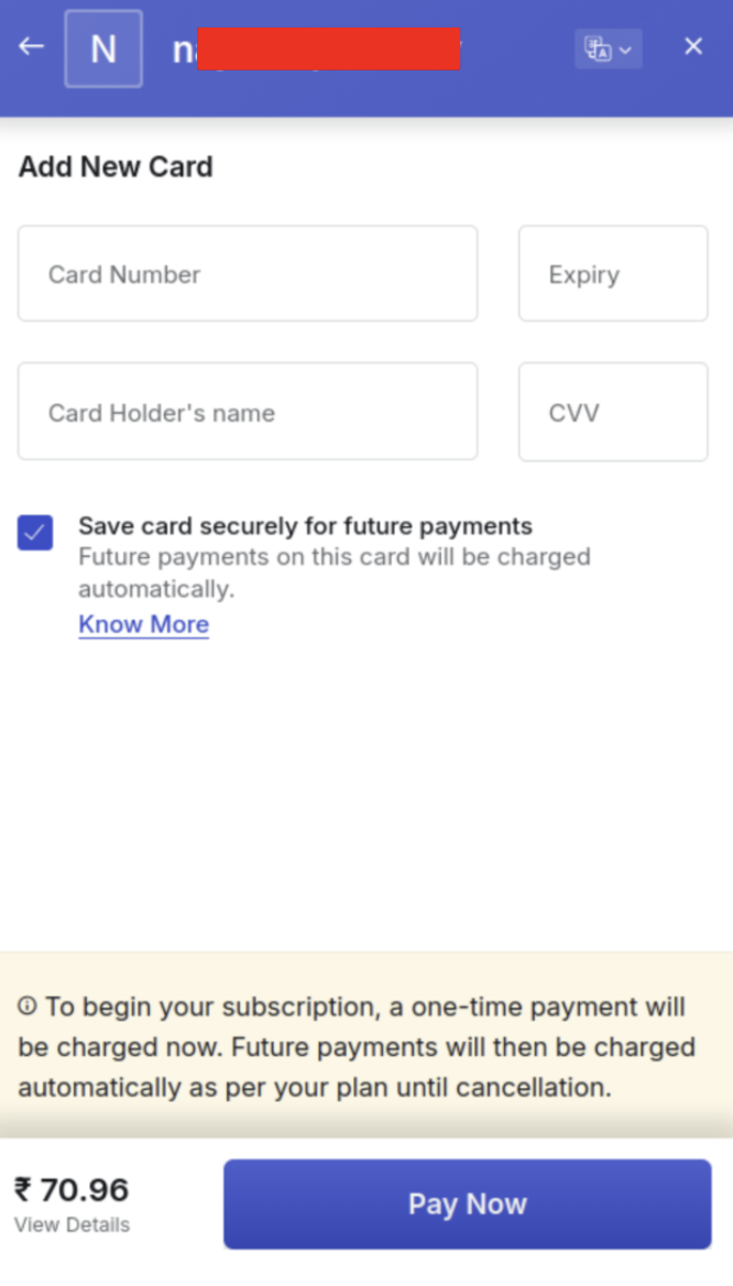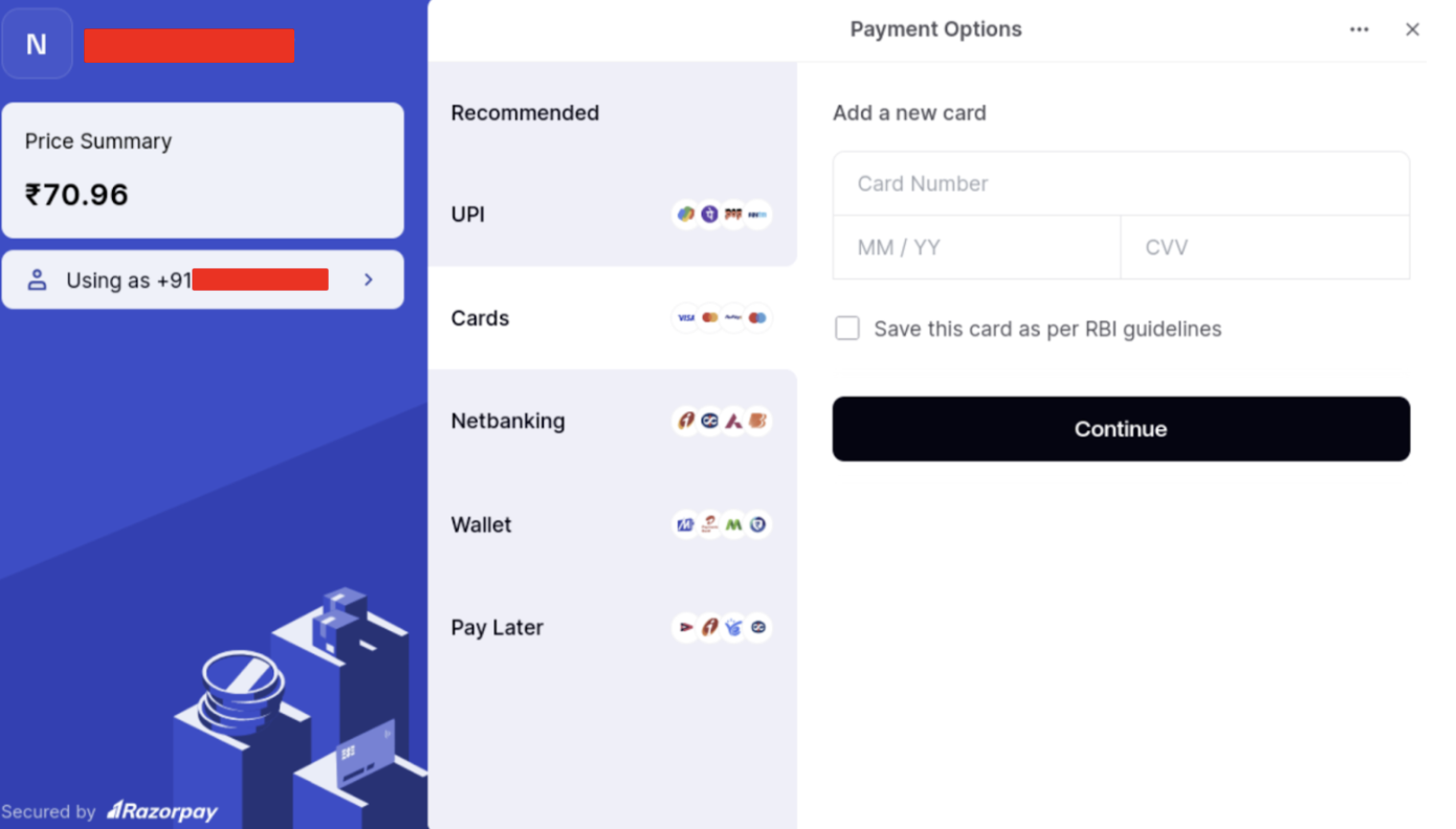 RazorPay is a leading payment gateway in India, supporting credit/debit cards, net banking, UPI (Unified Payments Interface), wallets, and more. Razorpay Checkout is used for recurring payments.