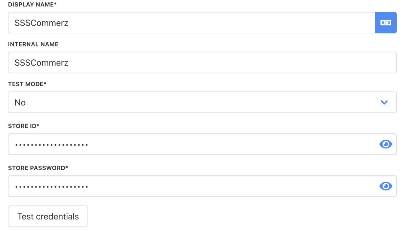 - Enter Display Name, Internal Name, Store ID, and Store Password.