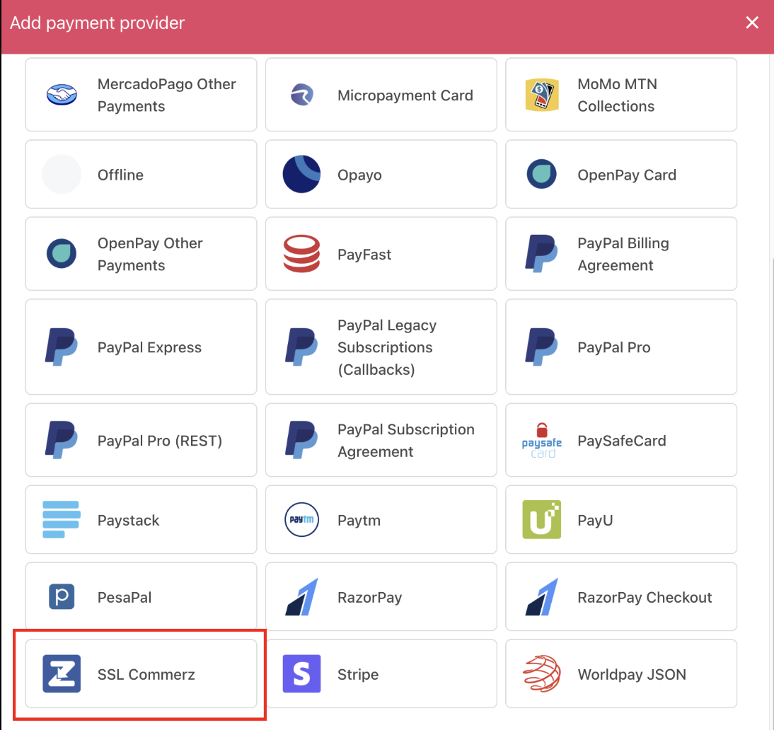- Select Add Payment Provider and choose SSLCOMMERZ.