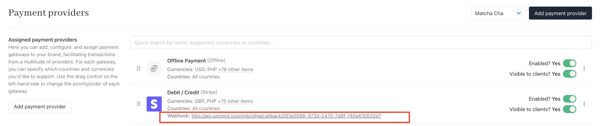 Go to Settings > Payment Providers, click the three dots next to Stripe, and select Edit.