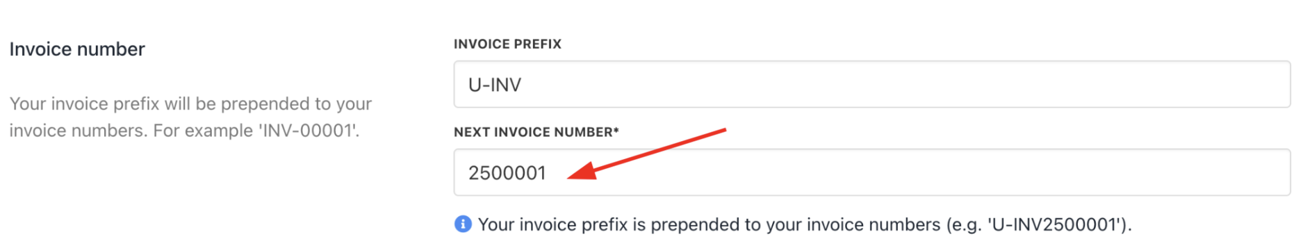 - Enter your preferred prefix (e.g., INV) and starting number.