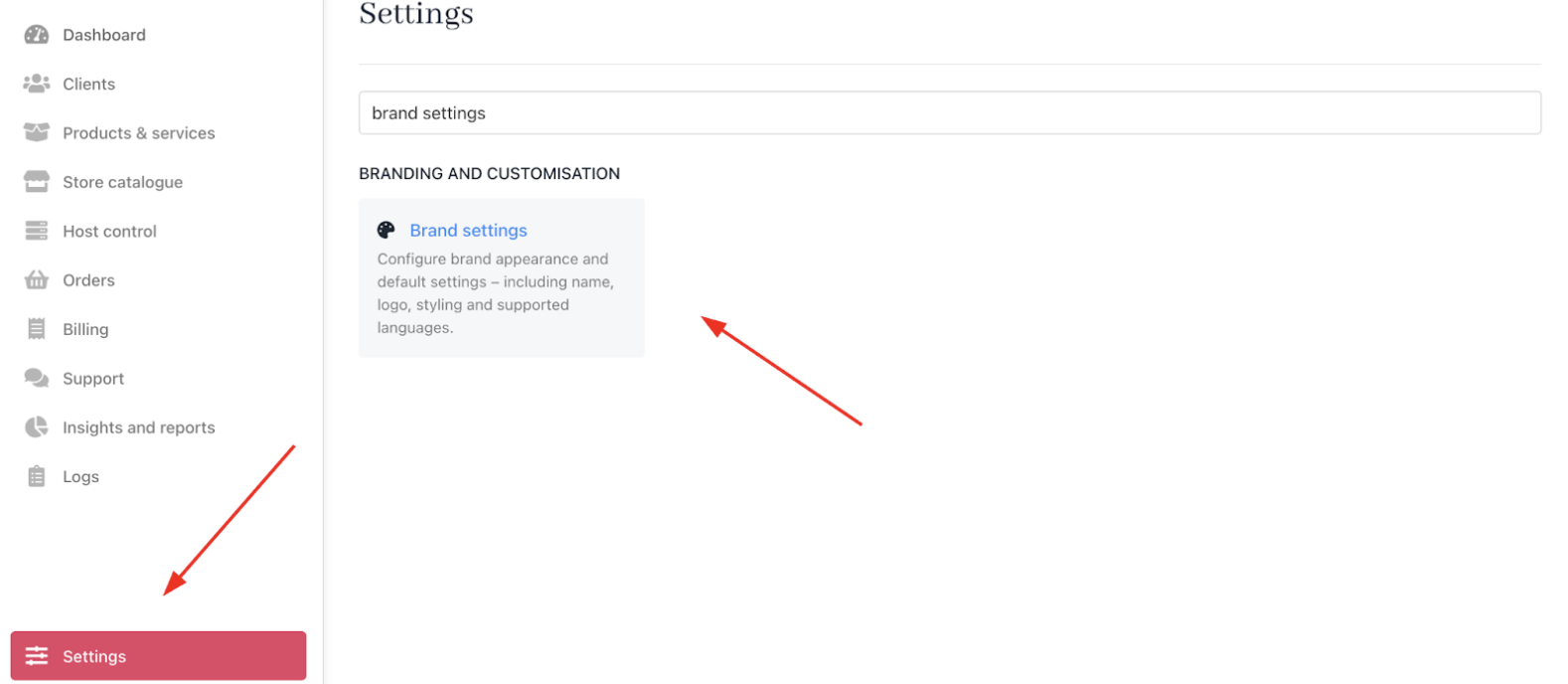 From the Upmind dashboard, go to Settings > Brand Settings under Branding and Customisation.