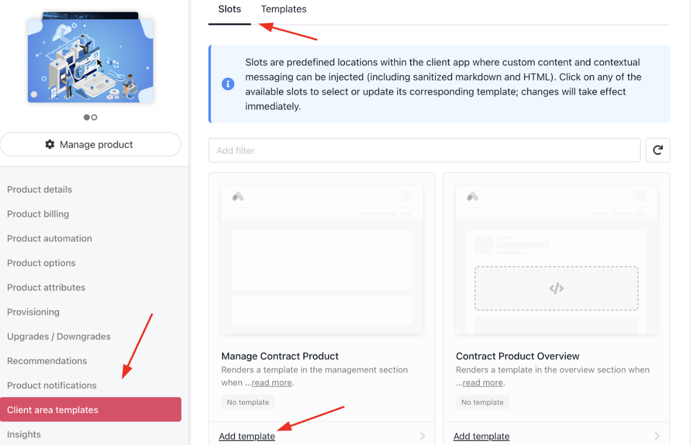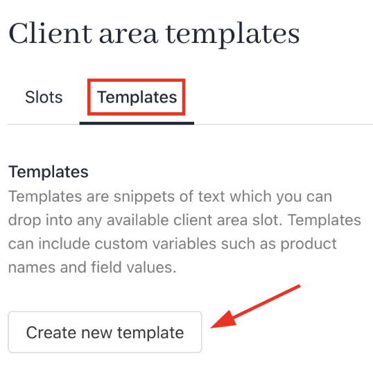 Client Area Templatesand click it. - Make sure Slots is selected.