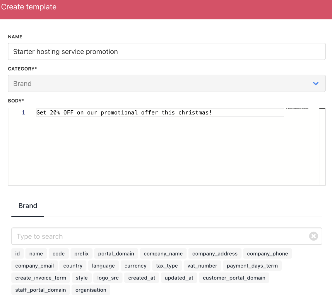 - In the Body field, write your message. You may use HTML and Twig syntax for styling and dynamic content.