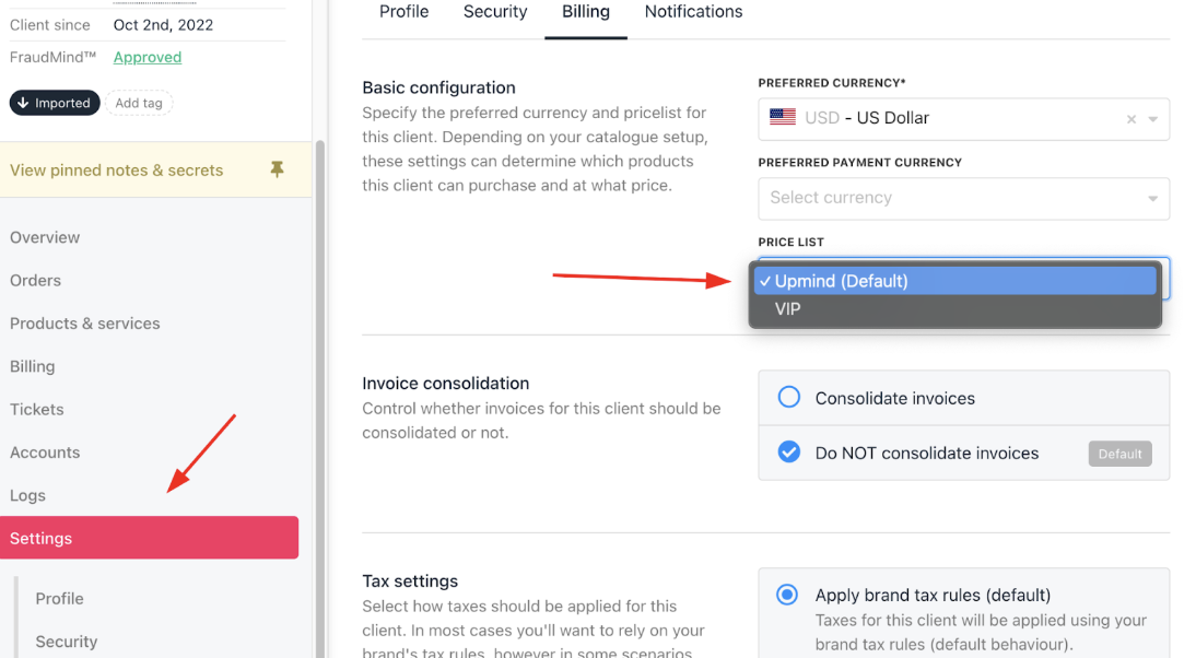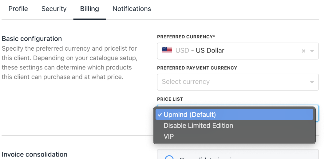 By default, Upmind uses a single price list that sets basic pricing for all products and services. You can override this by creating separate price lists for more flexibility.