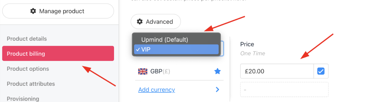 Example: If the default price is $80/month, you can charge one customer $60 and another $85, making price customisation easy in Upmind.