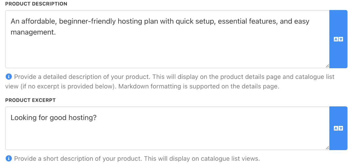 - Product Description: Detailed information about the product, such as features and benefits. Longer text supported.