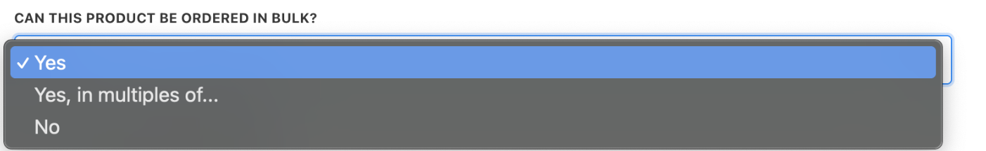 You can customise bulk order settings. By default, bulk ordering is disabled, so customers must add items individually to order multiples.