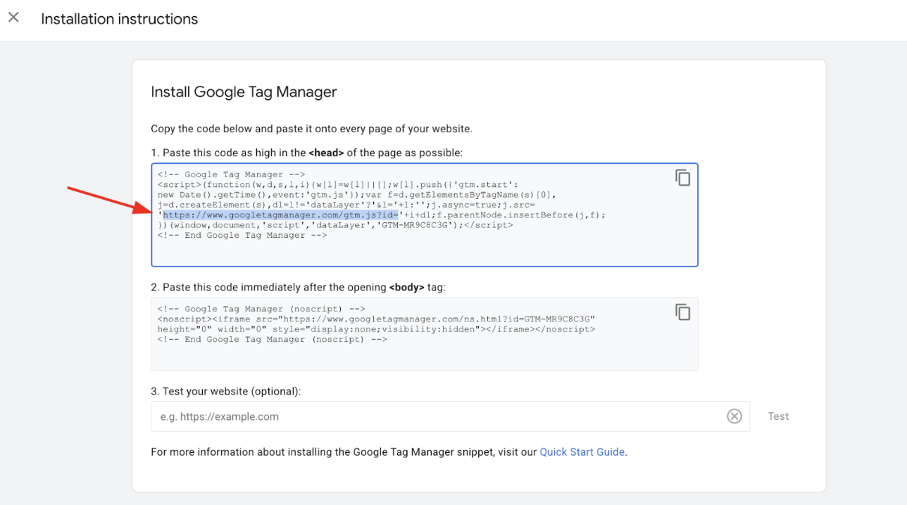 Steps to retrieve your GTM script URL