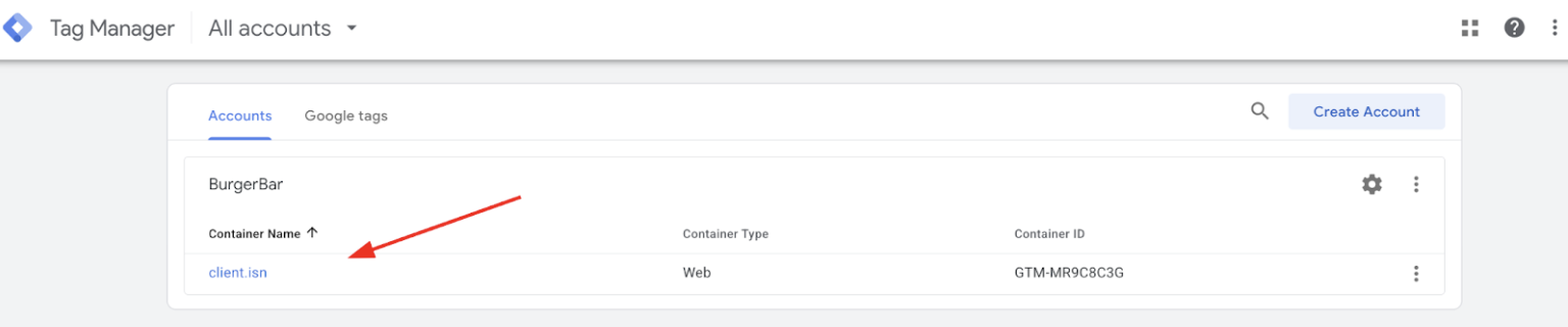 - Select the Container associated with the website or app you want to track from your GTM dashboard. If you have not created one, follow this guide.