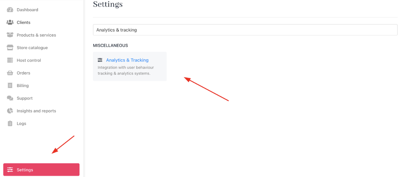 - Navigate to Settings > Miscellaneous > Analytics & Tracking.