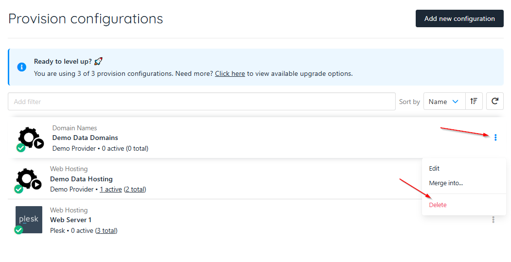 Removing a provisioning configuration in Upmind is a simple process that helps keep your service integrations organised and up to date. Following the correct steps, whether retiring an outdated provider, switching to a new integration, or clearing unused configurations, ensures your system remains efficient and free of errors.