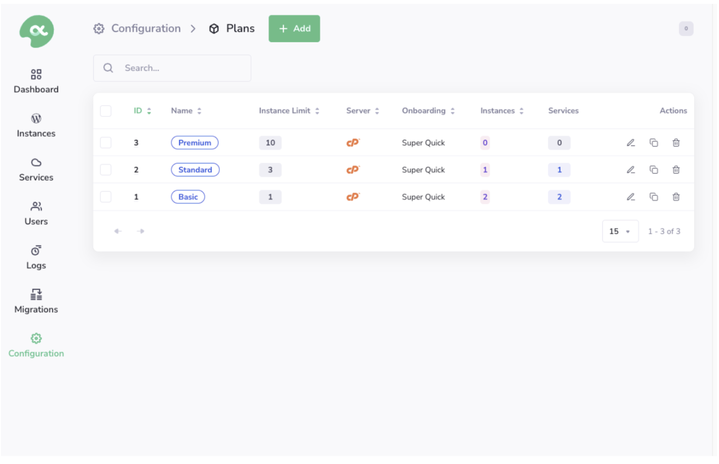 admin dashboard. - Navigate to Configuration > Plans.