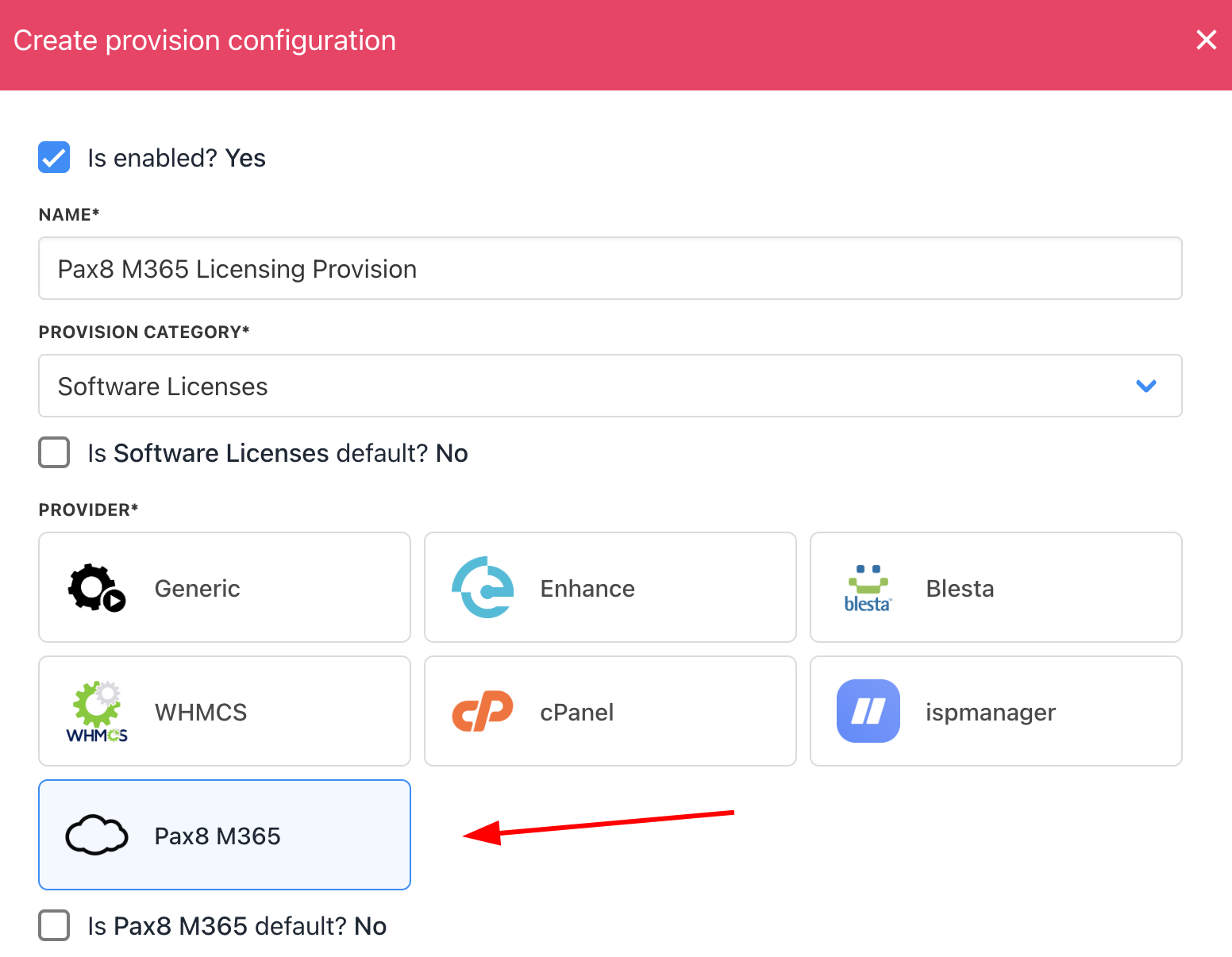 - Choose Pax8 M365 as the provisioning provider.