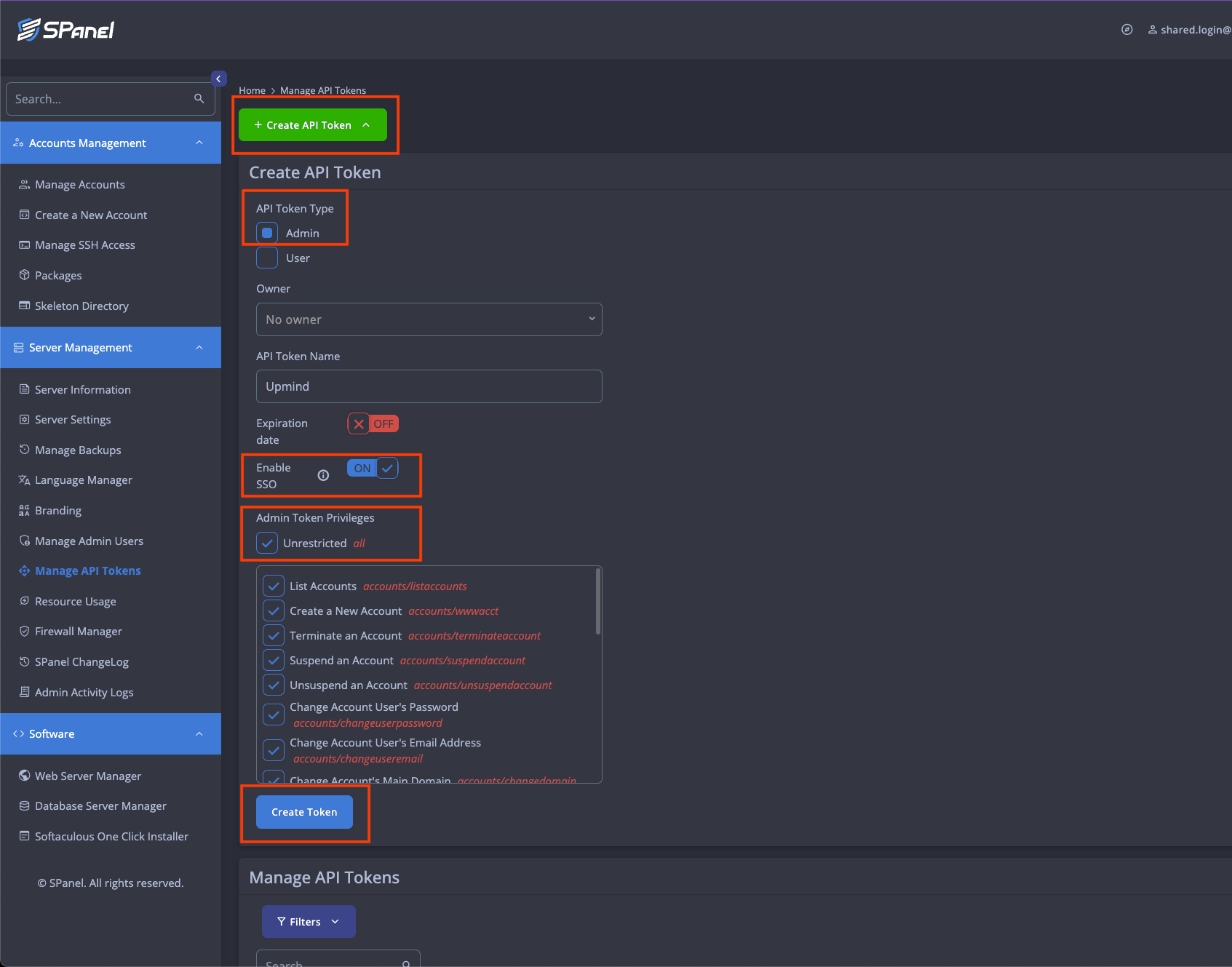 - Provide a Name (e.g., SPanel Hosting Provision).