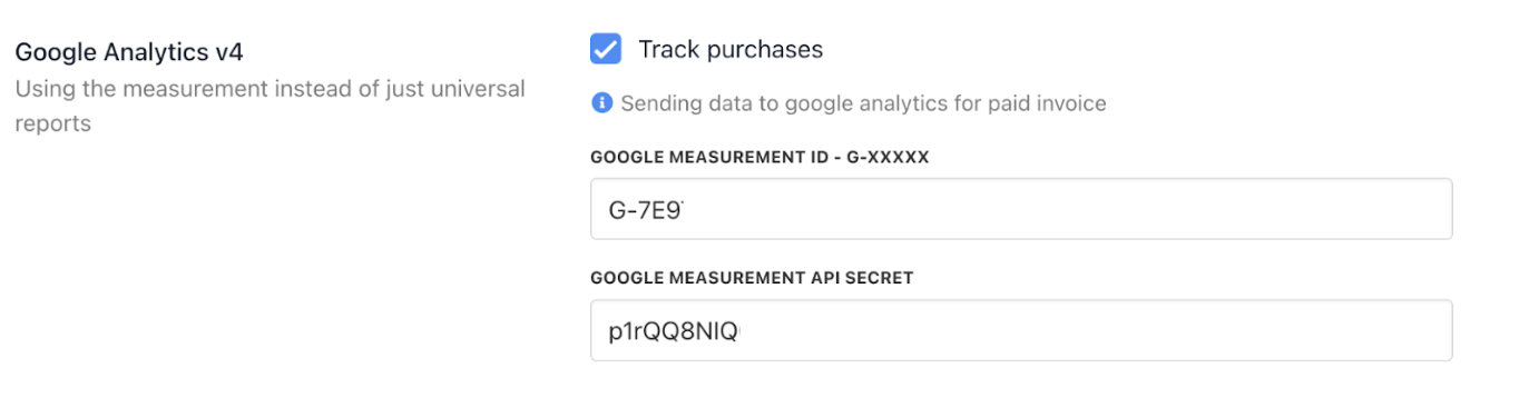 - Paste the Google Measurement ID and API Secret into their respective input fields.