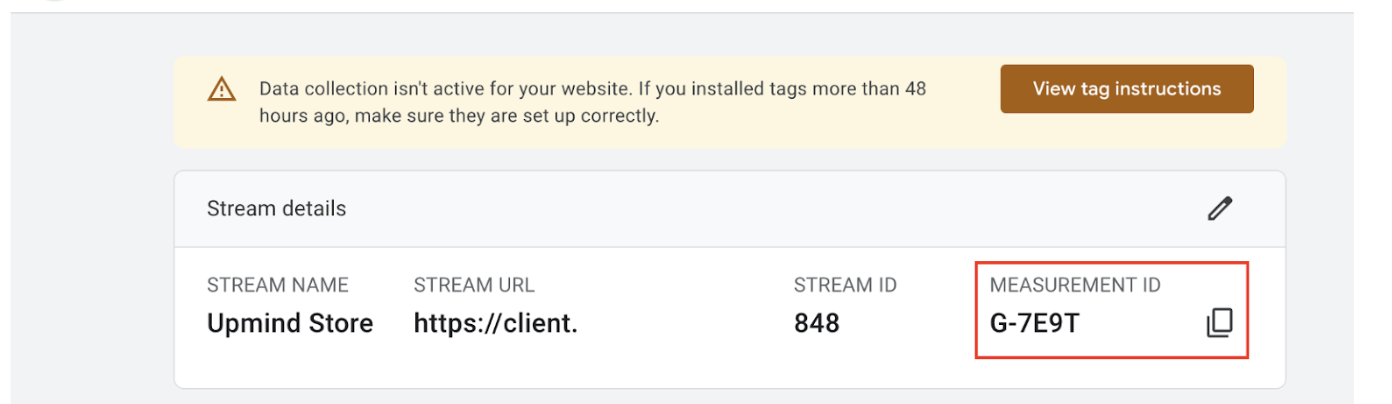 - Locate the Measurement ID (formatted like G-XXXXXXXXXX) under stream details.