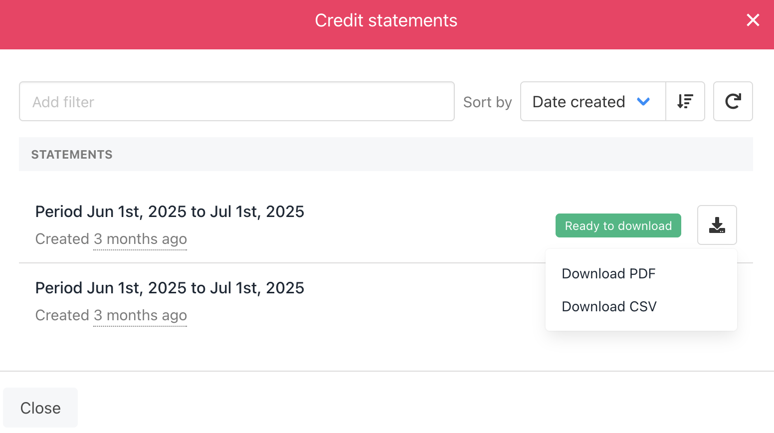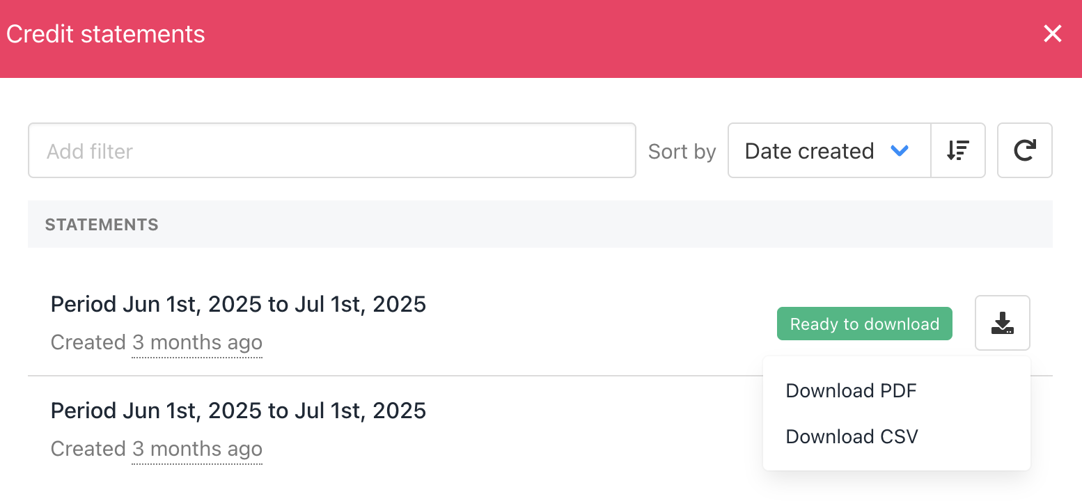 Download PDF or CSV credit statements
