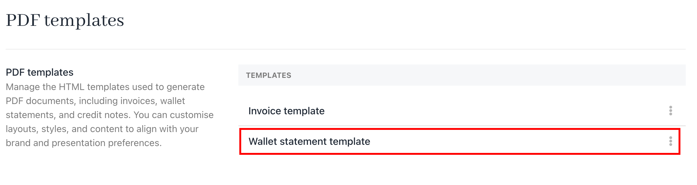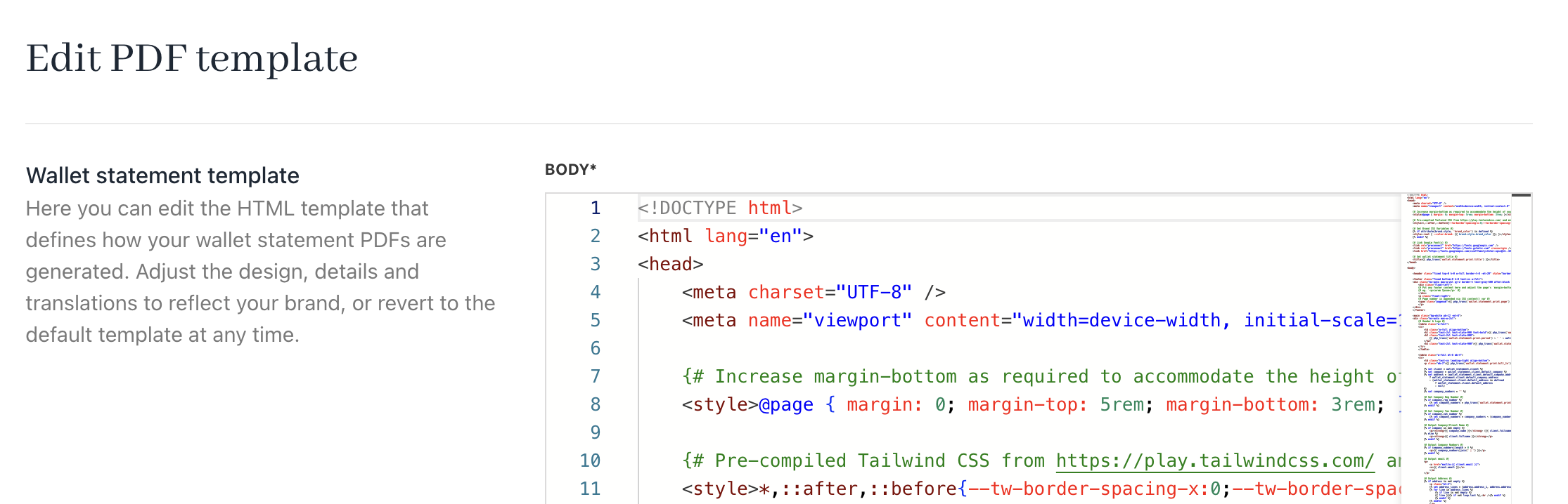 Accessing and editing the wallet statement template