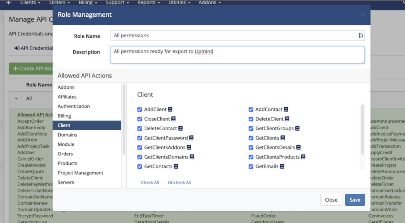 Setting up WHMCS access for Upmind