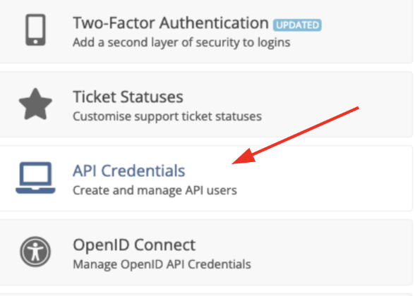 - In WHMCS admin, go to Setup > API Credentials.
