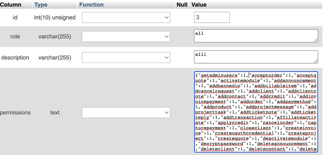 Give the API user all permissions