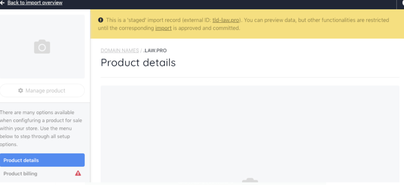 Upmind treats both domains and products as types of products. However, it stores only one record for each top-level domain (TLD), like ".com." This means if a TLD such as "com" is already in the system, any new imports that include this TLD won't create a duplicate record.