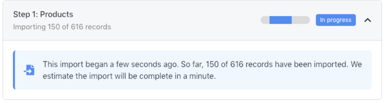 - Products will begin importing.