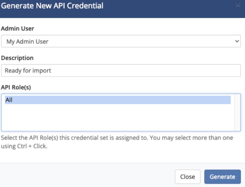 Generate new API credential