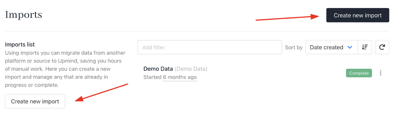 - Go to Settings > Imports in Upmind.