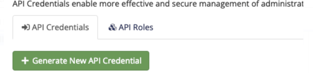 - Click Generate New API Credential.