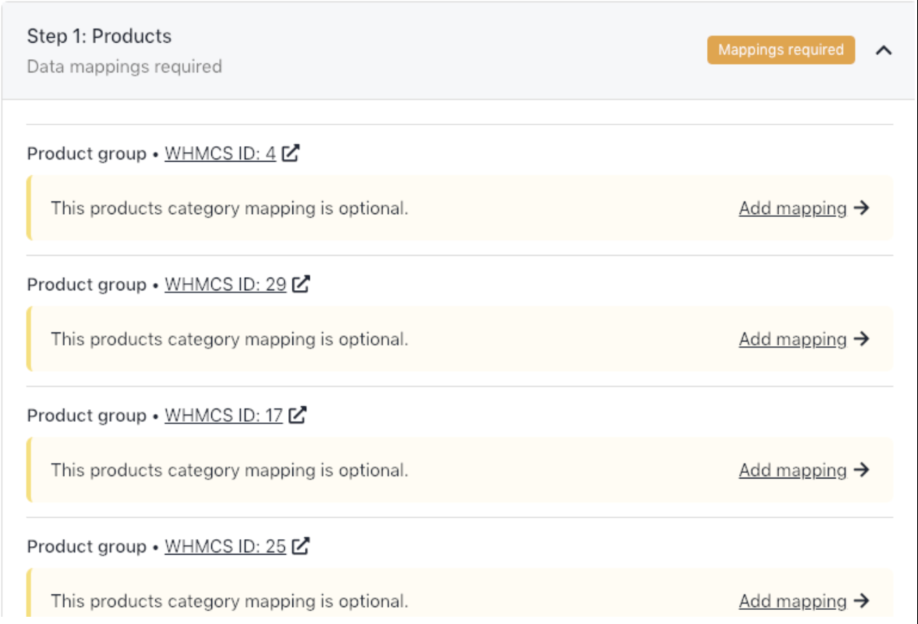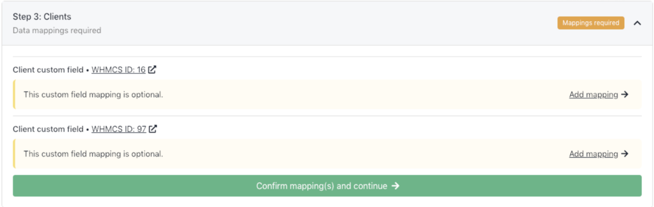If Upmind cannot automatically map certain data (e.g. servers, domains), you will be prompted to create manual mappings during import.