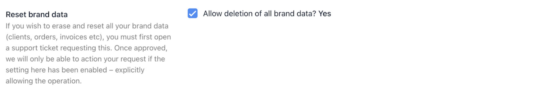 If you only have test clients and orders, you can request to reset your brand data. Resetting clears all client, order, invoice, log, and transaction data while keeping your products and settings intact.