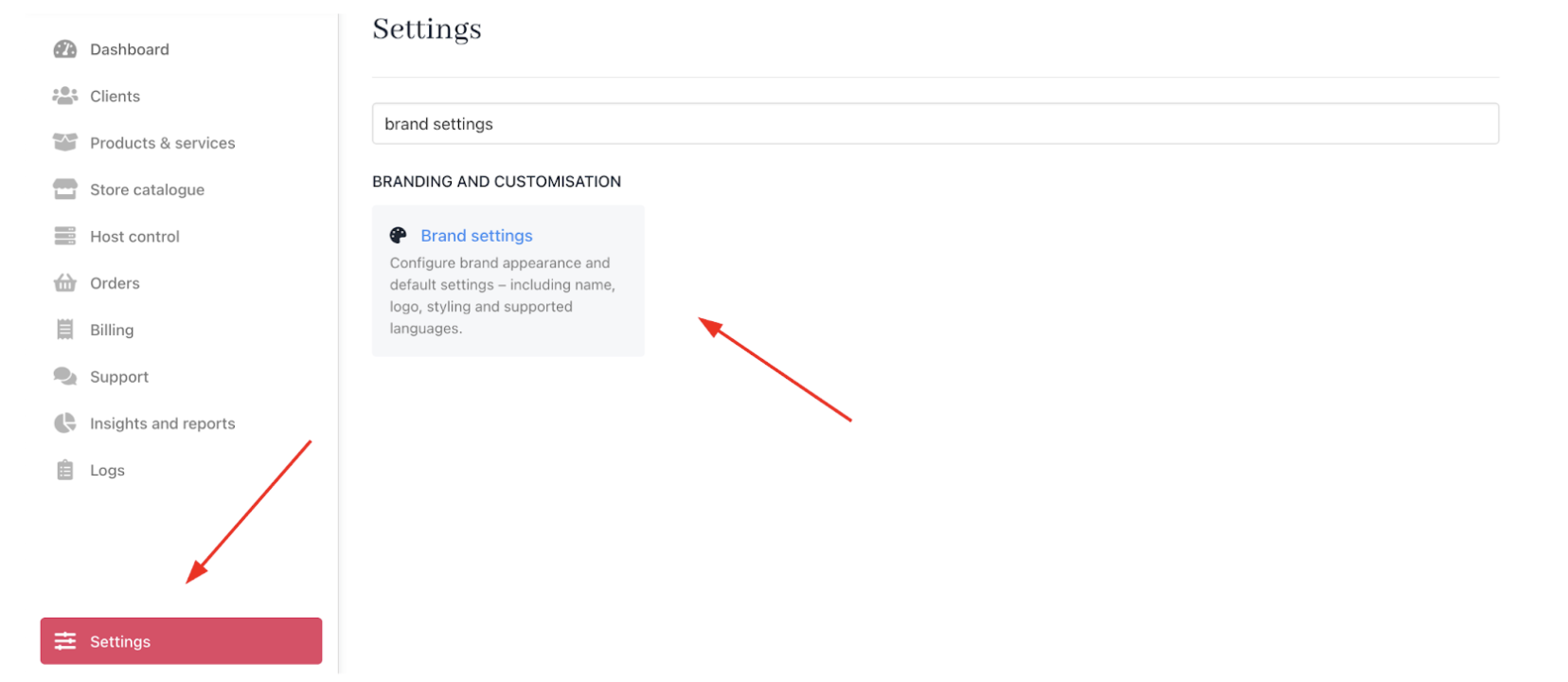 - Go to Settings > Brand Settings under Branding and Customisation.