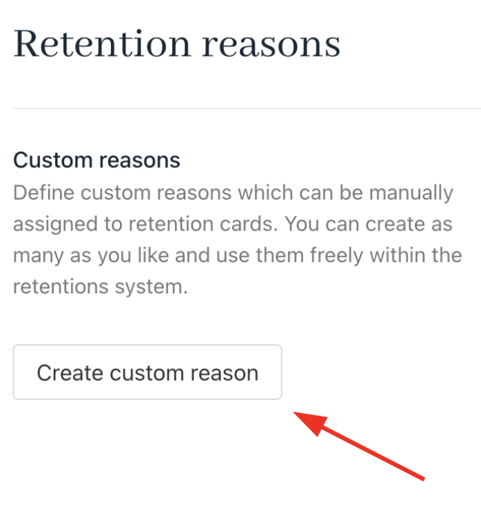 You can create custom reasons and assign them manually to retention cards, using as many as needed within the retention system.