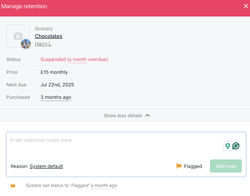 - Flagged: Subscription or contract product is canceled or overdue.