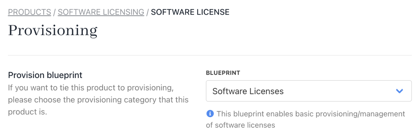 Provisioning, set the Provision Blueprint to Software Licenses.