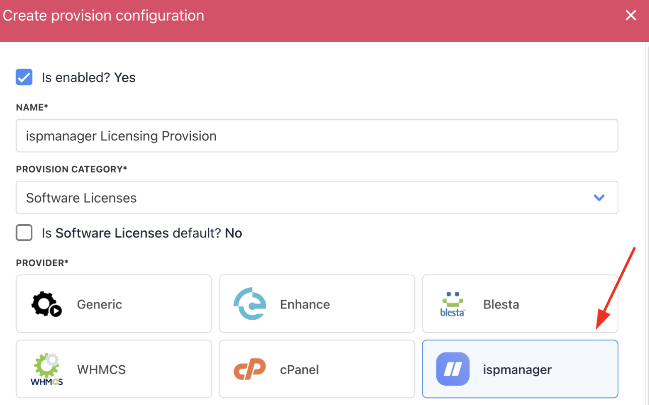 - Provide a Name (e.g., ispmanager Licensing Provision).