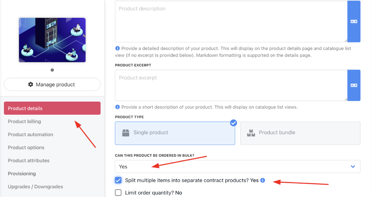 When enabled, Upmind automatically creates separate contract products for each unit in a bulk order. This means every item in the bulk purchase is tracked individually from provisioning to billing and renewal.