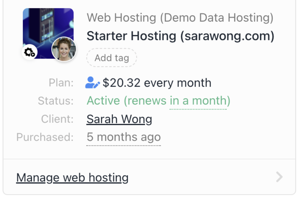 - Associate clients with hosting packages and contracts to trigger correct billing and provisioning.