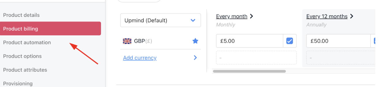 Product Billingto include pricing and billing cycles (monthly, quarterly, annually).